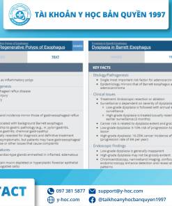 - Key facts: thông tin ngắn gọn, gạch đầu dòng những ý chính giúp sinh viên dễ tiếp thu. Ngoài ra còn có thêm các thông tin liên quan khác như thuật ngữ, các xét nghiệm phụ, chẩn đoán phân biệt, tài liệu tham khảo,..