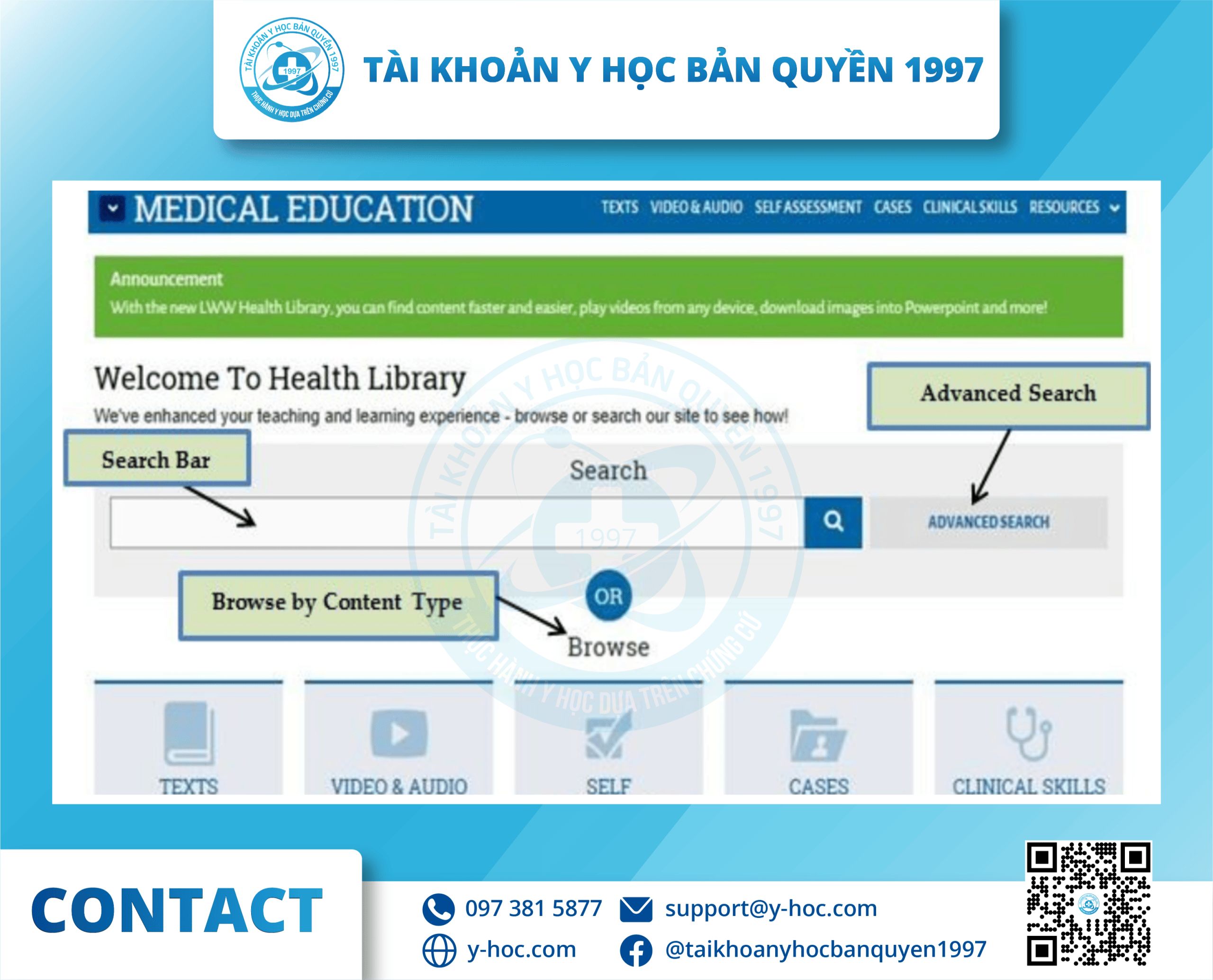 - LWW Health Library sở hữu phần lớn các đầu sách từ nhà xuất bản Lippincott Williams & Wilkins về các môn học đại cương cơ bản dành cho M1 và M2.