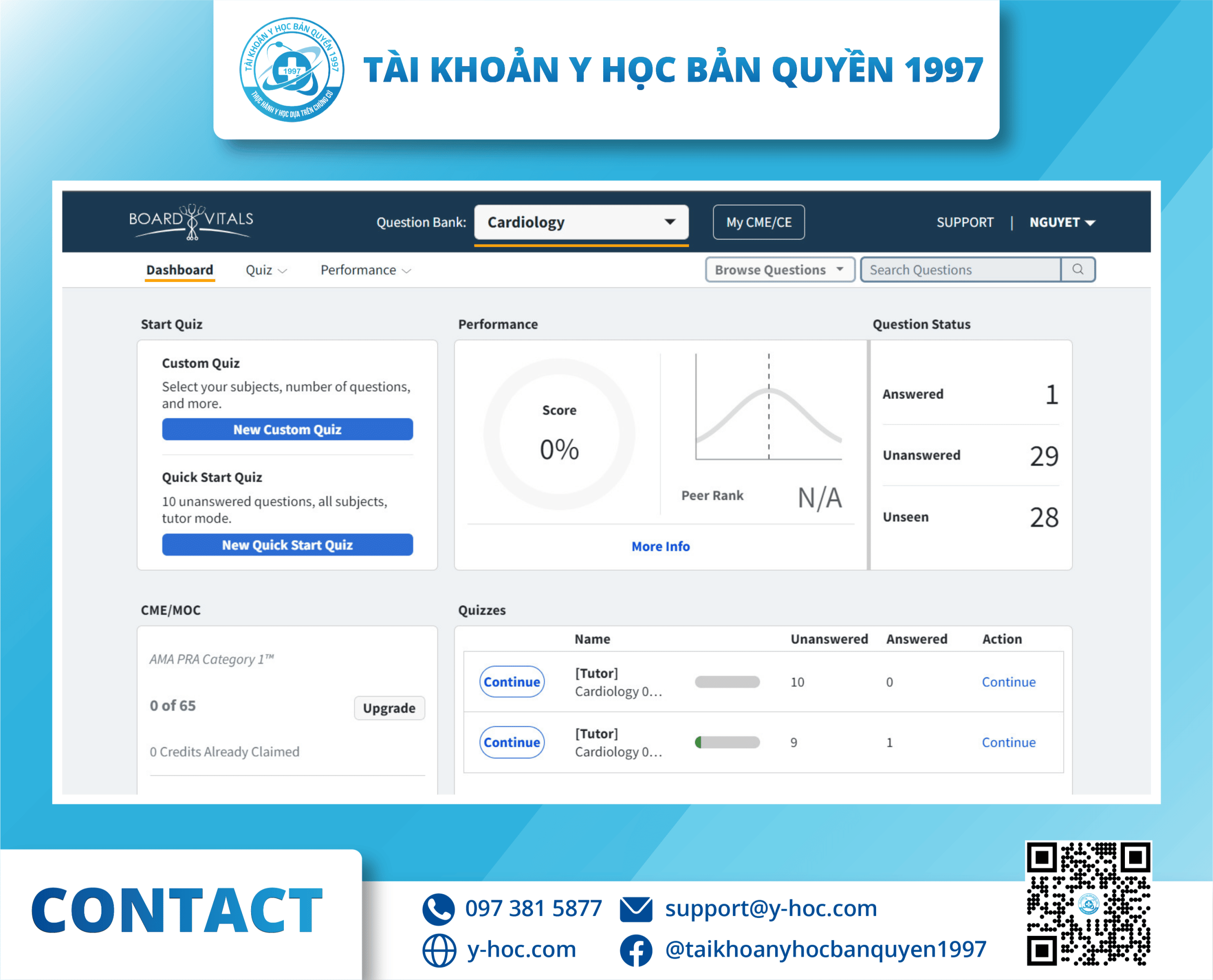 - BoardVitals sở hữu ngân hàng câu hỏi, CME chất lượng cao được công nhận bởi Hội đồng Công nhận về Đào tạo Y khoa Liên tục – ACCME và đảm bảo đậu 100%. Với đảm bảo này, nếu người dùng không vượt qua và nhận được chứng nhận, họ sẽ cung cấp cho các gói đăng ký miễn phí bằng với khoảng thời gian đã mua ban đầu, có thể nhiều lần cho đến khi người dùng đạt được mục tiêu.