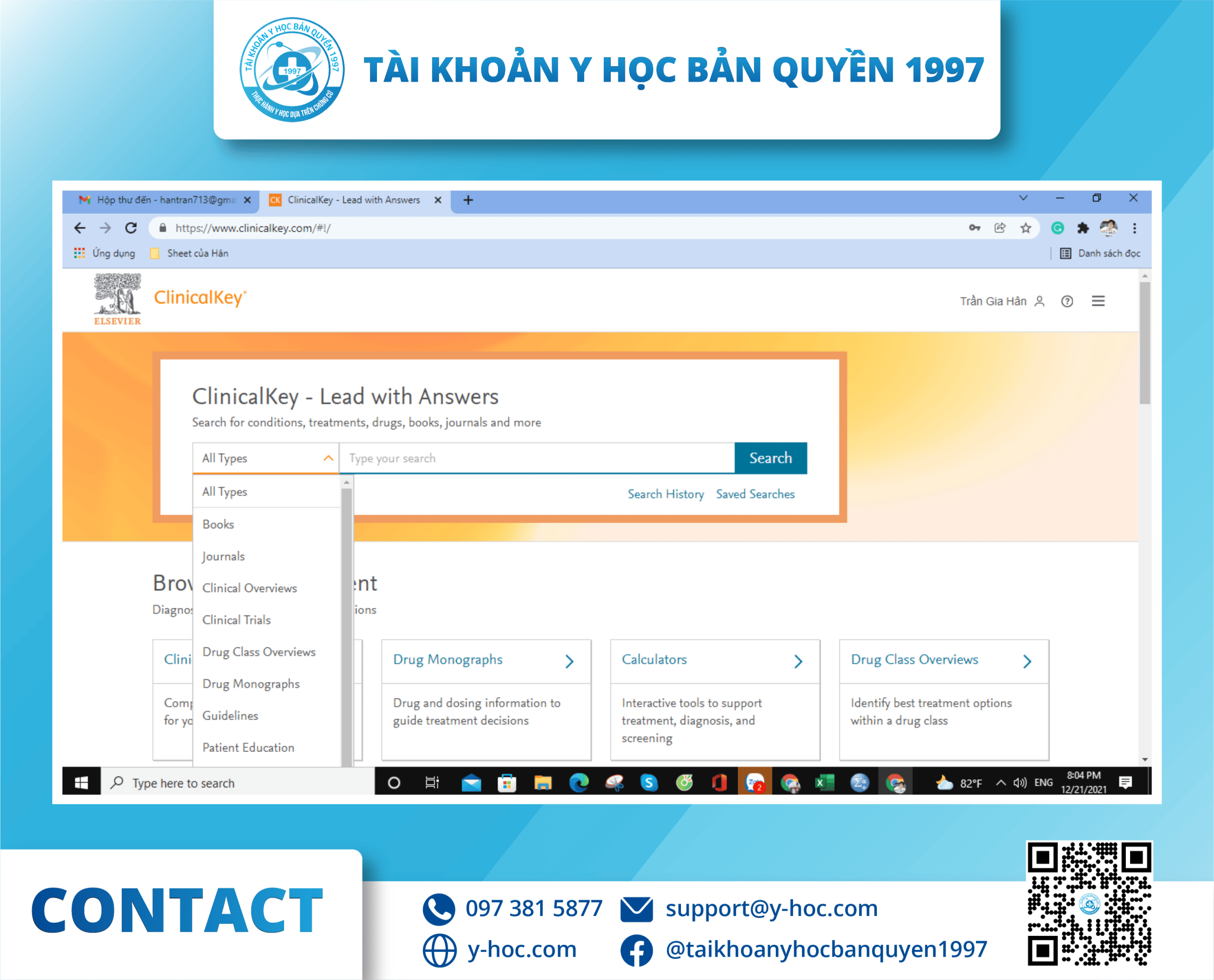 - Có thể tra cứu các nghiên cứu y khoa, các bằng chứng y học trên ClinicalKey.