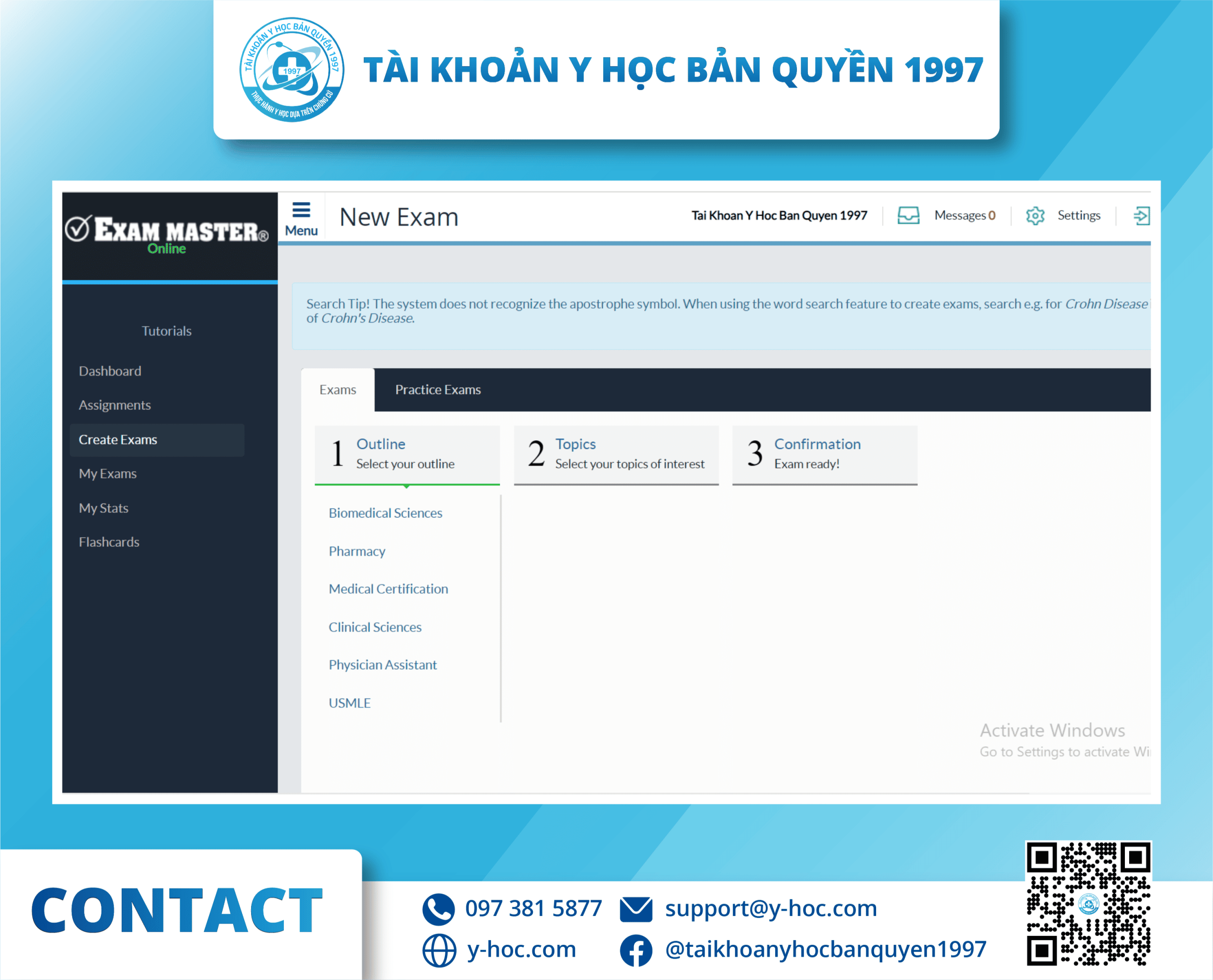 - Create Exam: là một tính năng nổi bật, bao gồm Exams và Practice Exams