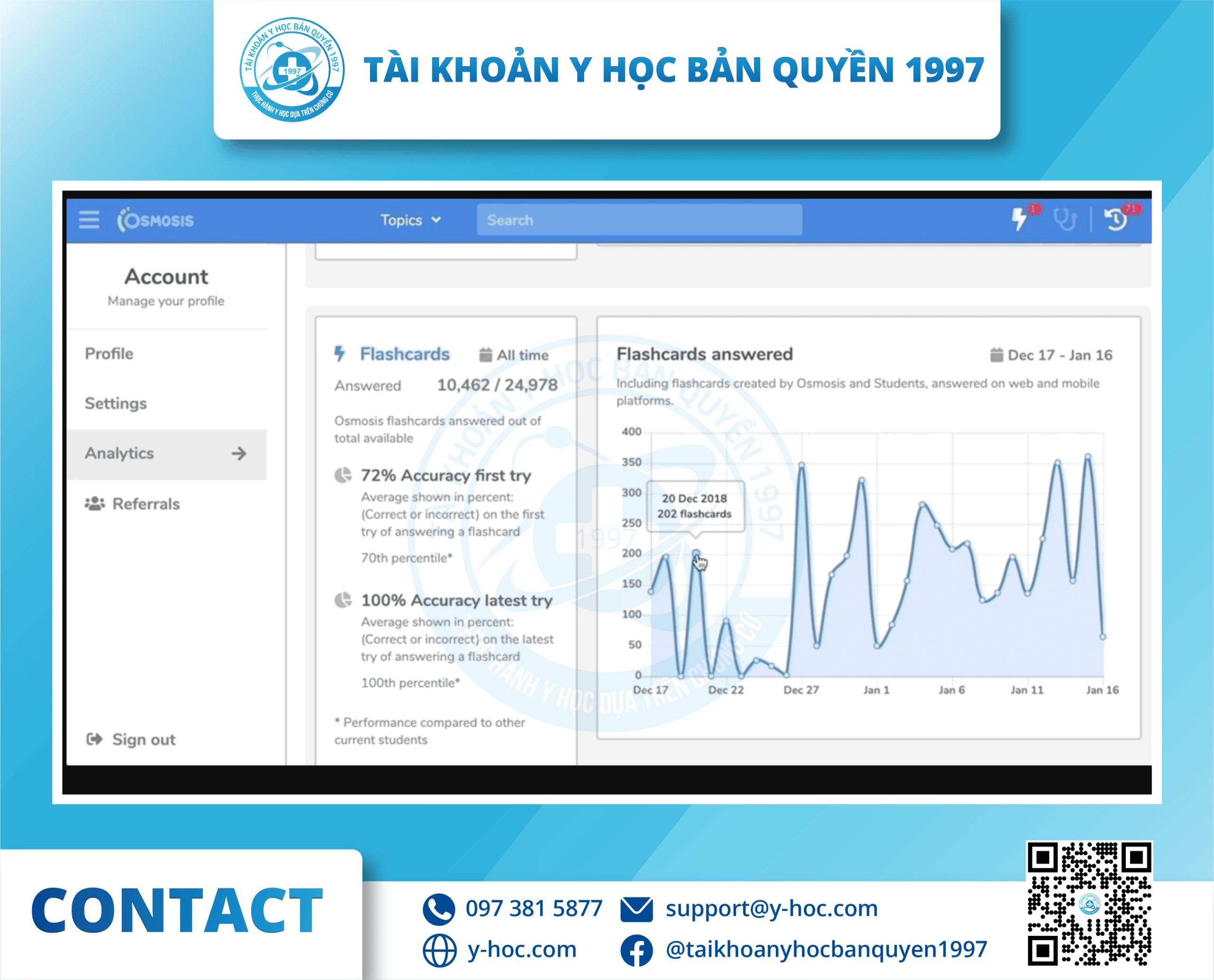 – Questions: Osmosis hỗ trợ tối đa việc tự học cho người dùng qua bộ câu hỏi dựa trên các câu hỏi của USMLE, và có cả giải thích chi tiết cho đáp án đúng và sai.