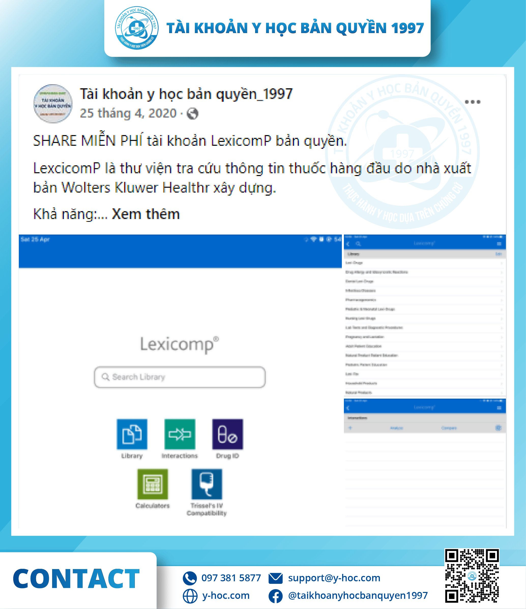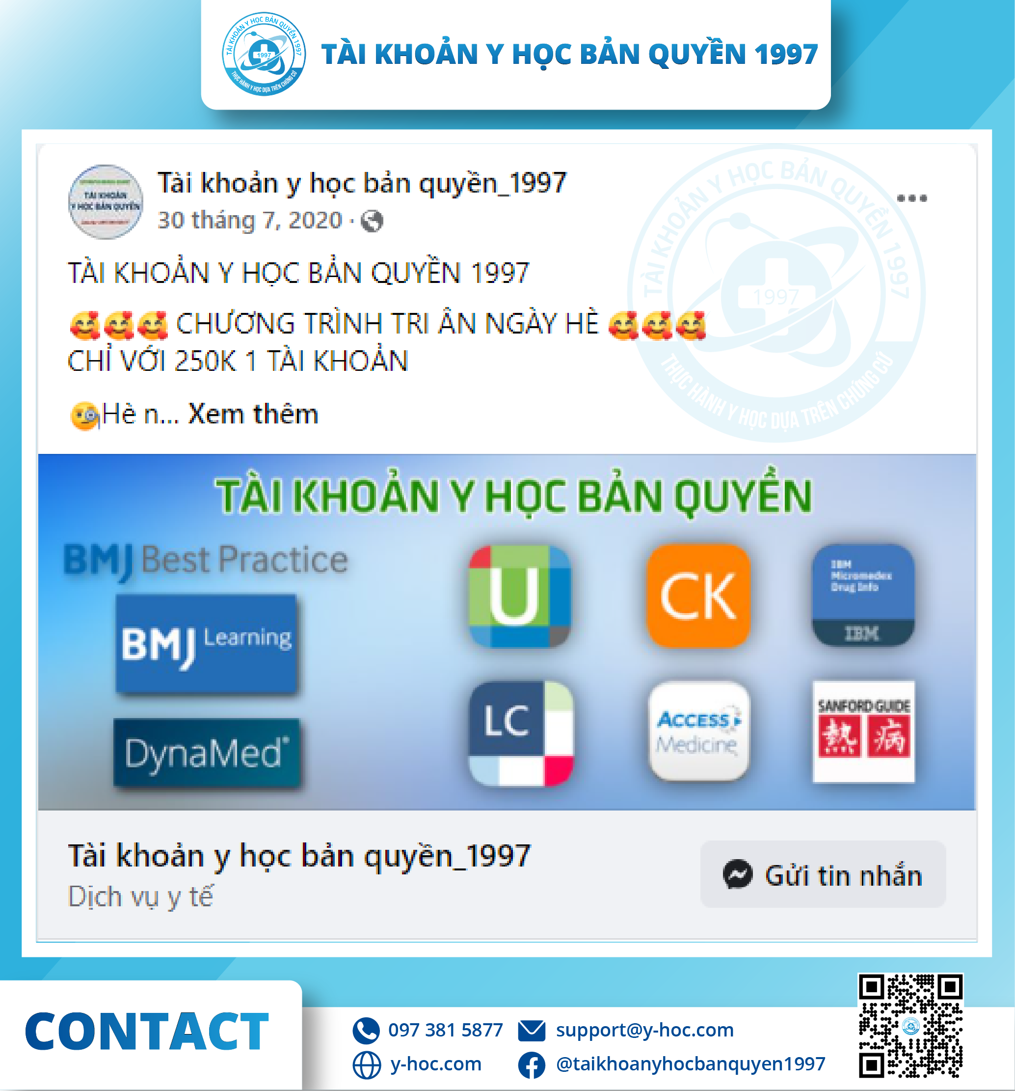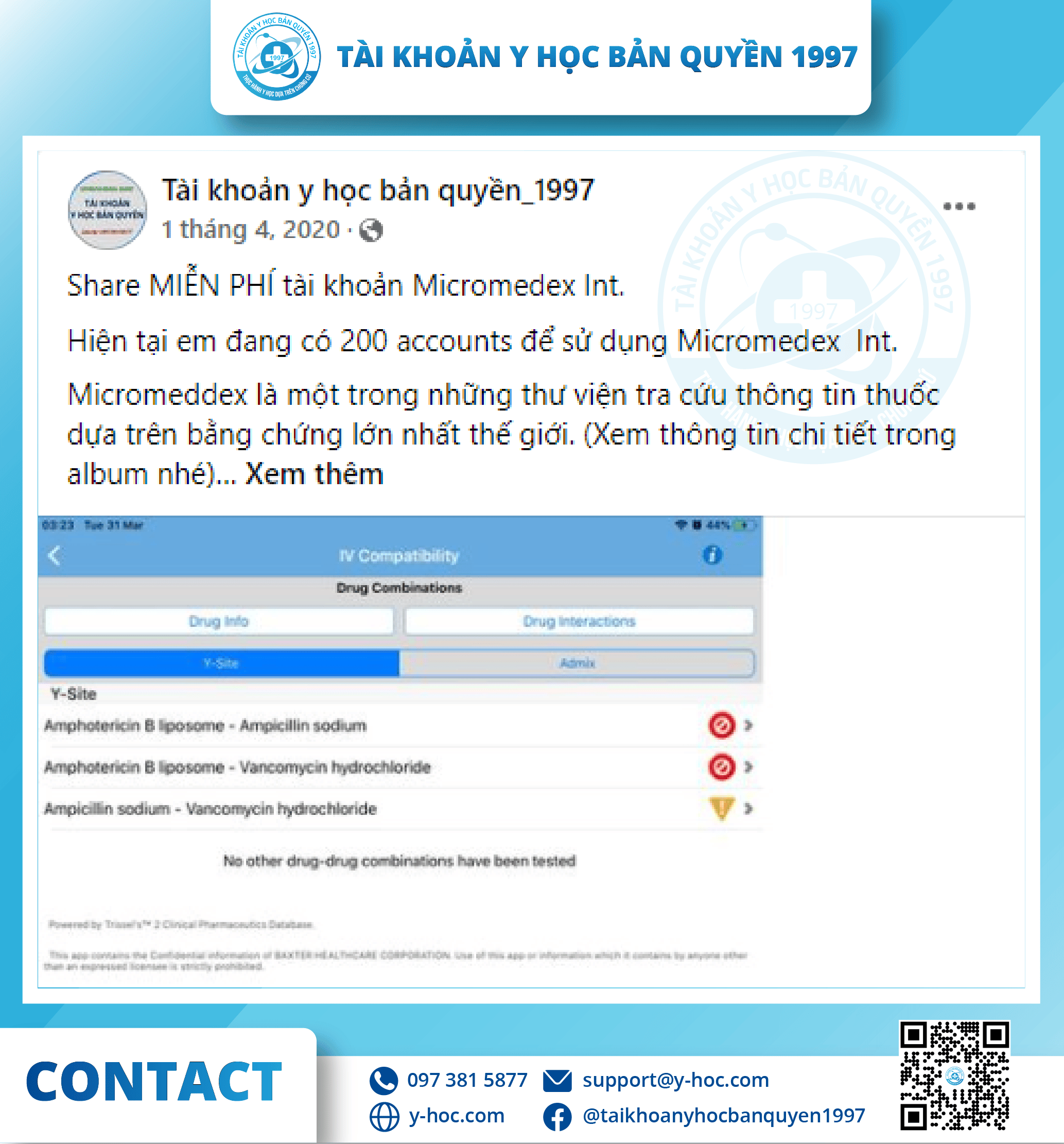 Qua một năm hoạt động, tổ chức “Tài khoản y học bản quyền 1997” đã được đông đảo các bạn sinh viên, bác sĩ, dược sĩ tại Việt Nam biết đến với vai trò là nhà cung cấp tài khoản y học bản quyền hàng đầu với: